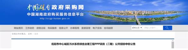72億!長江環保聯合體預中標岳陽市城區污水處理PPP項目