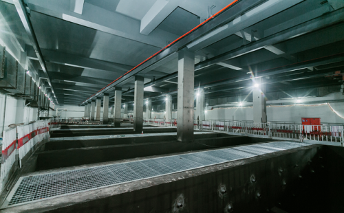西安市第三污水處理廠并不只是簡(jiǎn)單將地上的污水處理廠“下沉”,而是在充分考慮各類安全風(fēng)險(xiǎn)等因素后,重新統(tǒng)籌功能分區(qū),實(shí)現(xiàn)資源整合的最優(yōu)配置。項(xiàng)目采用分層布置形式,地下一層為操作層,為設(shè)備調(diào)控中心和人力檢修中心,地下二層為水處理構(gòu)筑物和綜合管廊,污水處理廠的曝氣池、沉淀池等在這里“一應(yīng)俱全”。同時(shí),項(xiàng)目團(tuán)隊(duì)結(jié)合施工方案對(duì)地下空間進(jìn)行多維度優(yōu)化,形成立體三維布置,通過(guò)優(yōu)化工藝流程、重組單元組團(tuán)、修改構(gòu)筑物布局等方式,提升空間利用效率,將項(xiàng)目占地用地減少了三分之二。