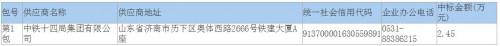本項目中標供應商為:中鐵十四局集團有限公司、中鐵建發展集團有限公司、中節能國禎環保科技股份有限公司聯合體;中標金額的單位為元/立方米,本項目中標金額為污水處理服務費綜合單價2.45元/立方米。