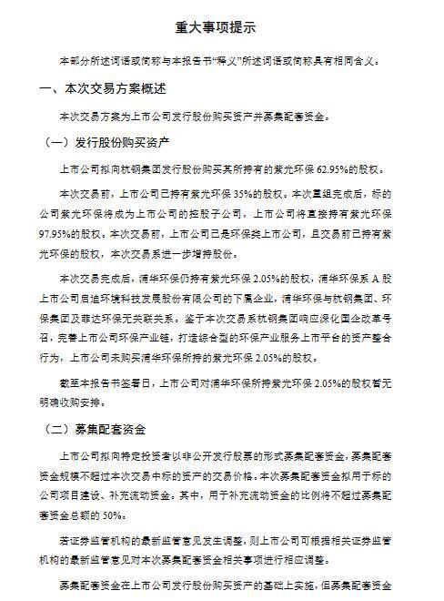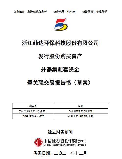 12月16日菲達(dá)環(huán)保公布發(fā)行股份購(gòu)買資產(chǎn)并募集配套資金暨關(guān)聯(lián)交易報(bào)告書(草案),上市公司擬向公司控股股東杭鋼集團(tuán)發(fā)行股份購(gòu)買其所持有的紫光環(huán)保62.95%的股權(quán)。